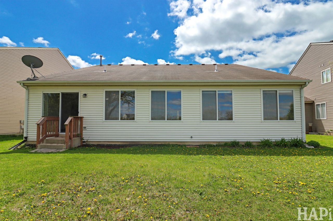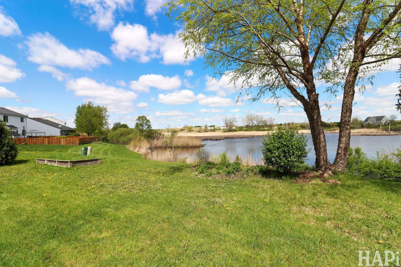 Rarely available ranch with basement on a premium pond-view lot in Symphony Meadows! This open-concept home features spacious rooms, a bright kitchen with breakfast area and sliders to the backyard, and peaceful water views. The primary suite offers walk-in closets and a private bath with separate shower. Unfinished basement and crawl space provide excellent storage and potential for additional living space. Beautifully maintained yard. Community amenities include walking trails, parks, and playgrounds. Conveniently located near shopping, dining, golf, and major routes (12, 60, 120). A perfect blend of comfort, convenience, and scenic living!
